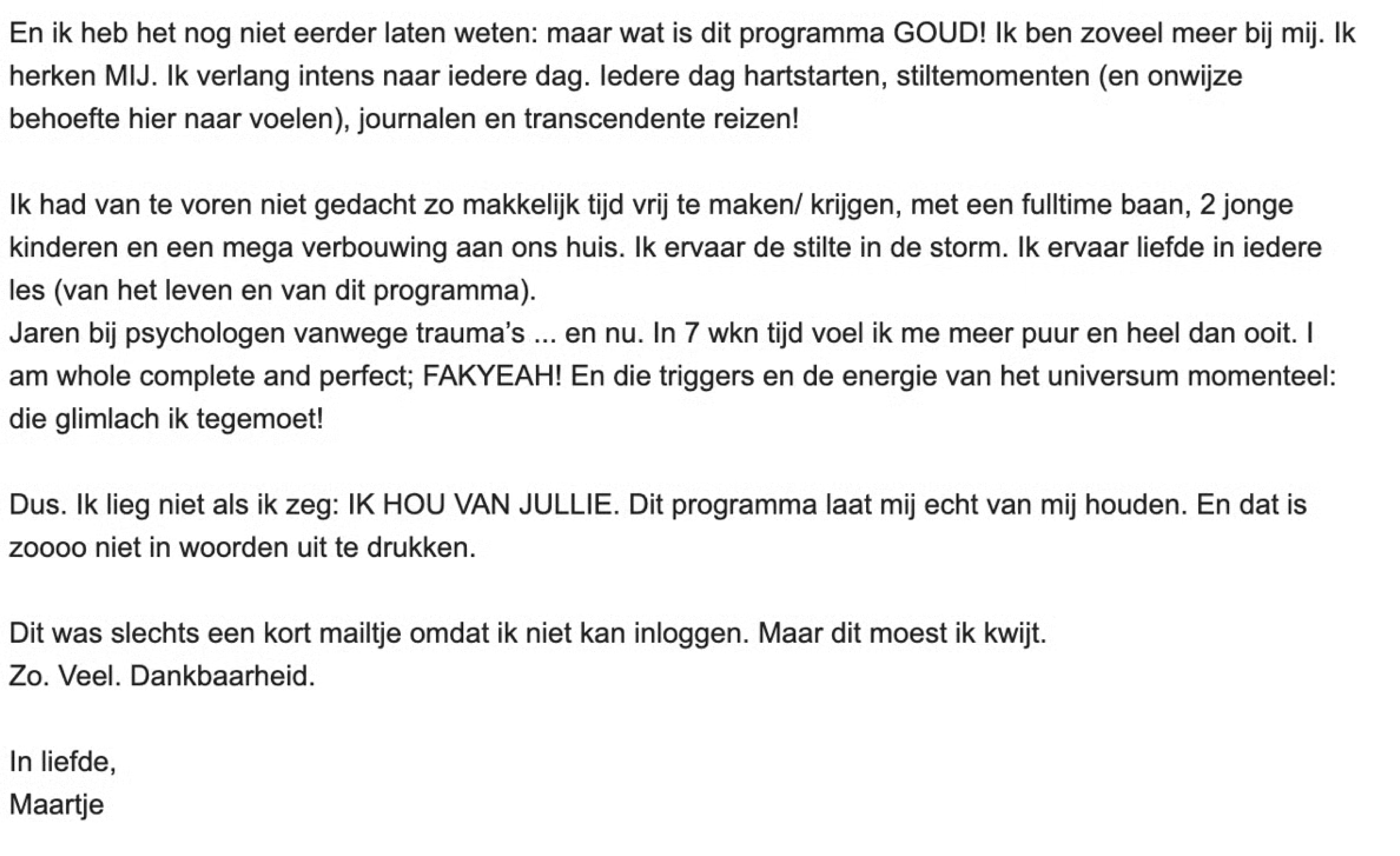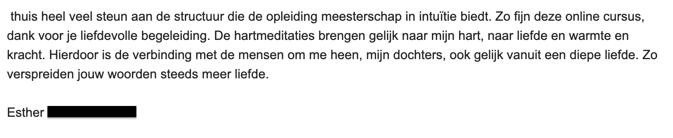 Meesterschap in Intuïtie helpt je de lagen af te pellen. Het onderscheid tussen ego en jezelf wordt helder. Ik herken mijn eigen stem nu en durf haar uit te spreken.